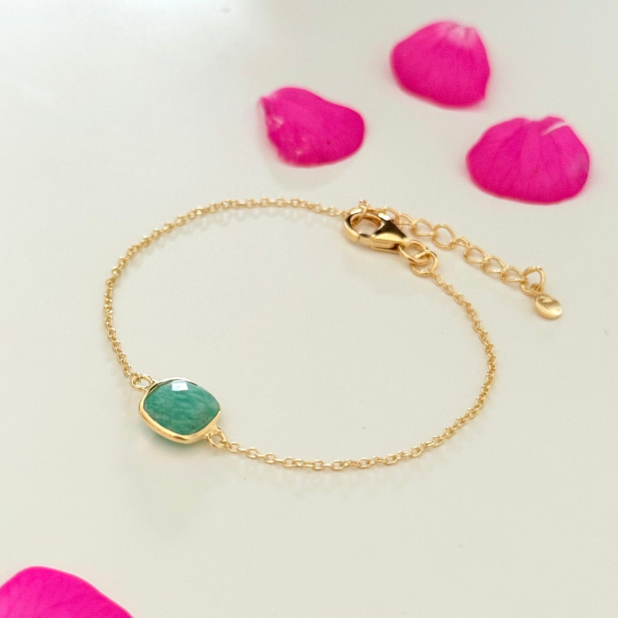 Minimal Adjustable Bracelet in 3 micron 18k Gold Plated Sterling Silver with a Squared Shaped Amazonite Gemstone