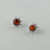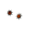 Baltic Amber Sun Design Stud Earrings in Oxidised Sterling Silver