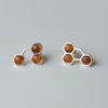 Sterling Silver Stud Earrings with Honey Coloured Genuine Baltic Amber in a Honeycomb Design