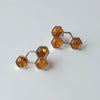 These stud earrings showcase a unique honeycomb-inspired design crafted from polished 925 sterling silver, which beautifully frames warm honey coloured Baltic amber stones. The intricate honeycomb pattern adds texture and depth, creating a modern geometric elegance that highlights the amber’s natural golden colour. Each amber stone is rich with organic inclusions, giving every pair a one-of-a-kind character. Lightweight and artfully handmade, these earrings blend contemporary style with nature’s ancient warmth, making them a captivating accessory for any occasion.