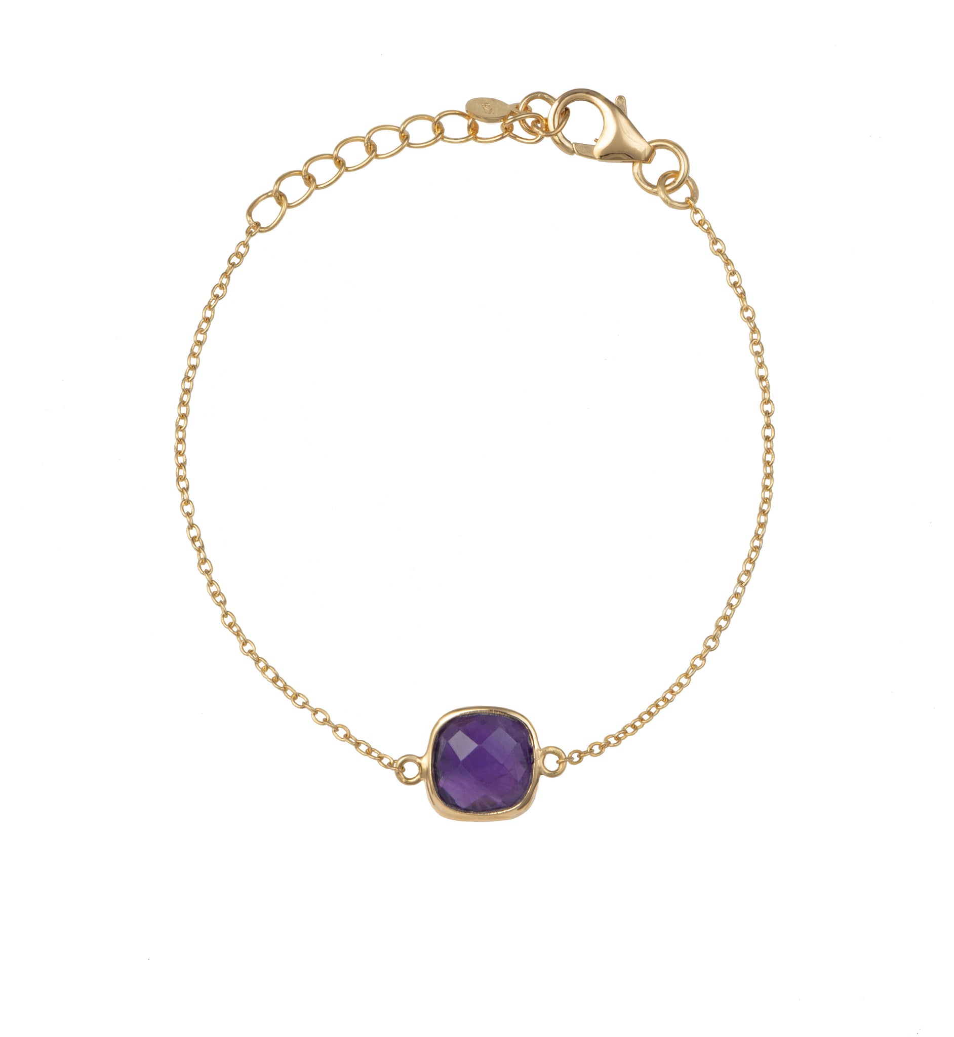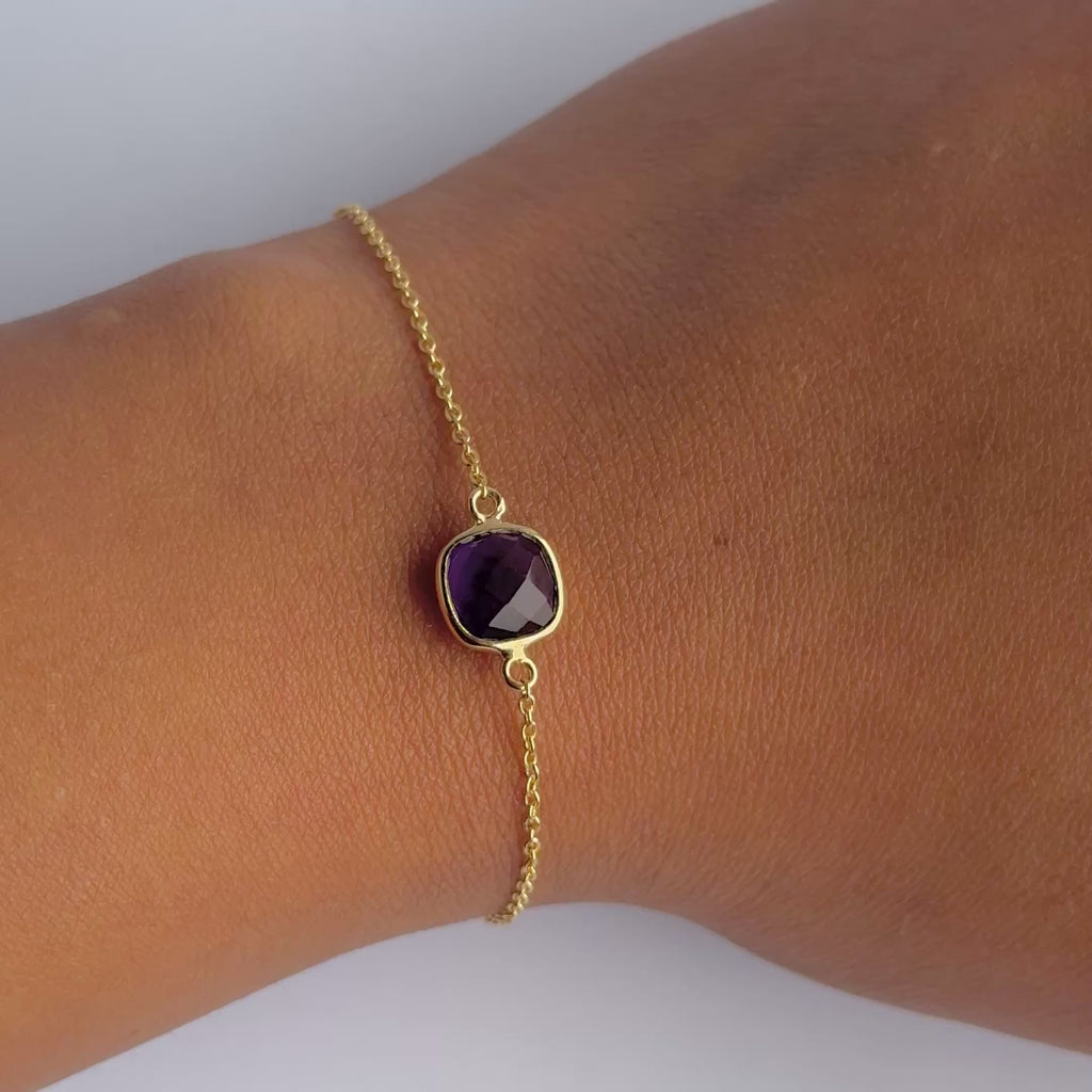Minimal Adjustable Bracelet in 3 micron 18k Gold Plated Sterling Silver with a Squared Shaped Amethyst Gemstone