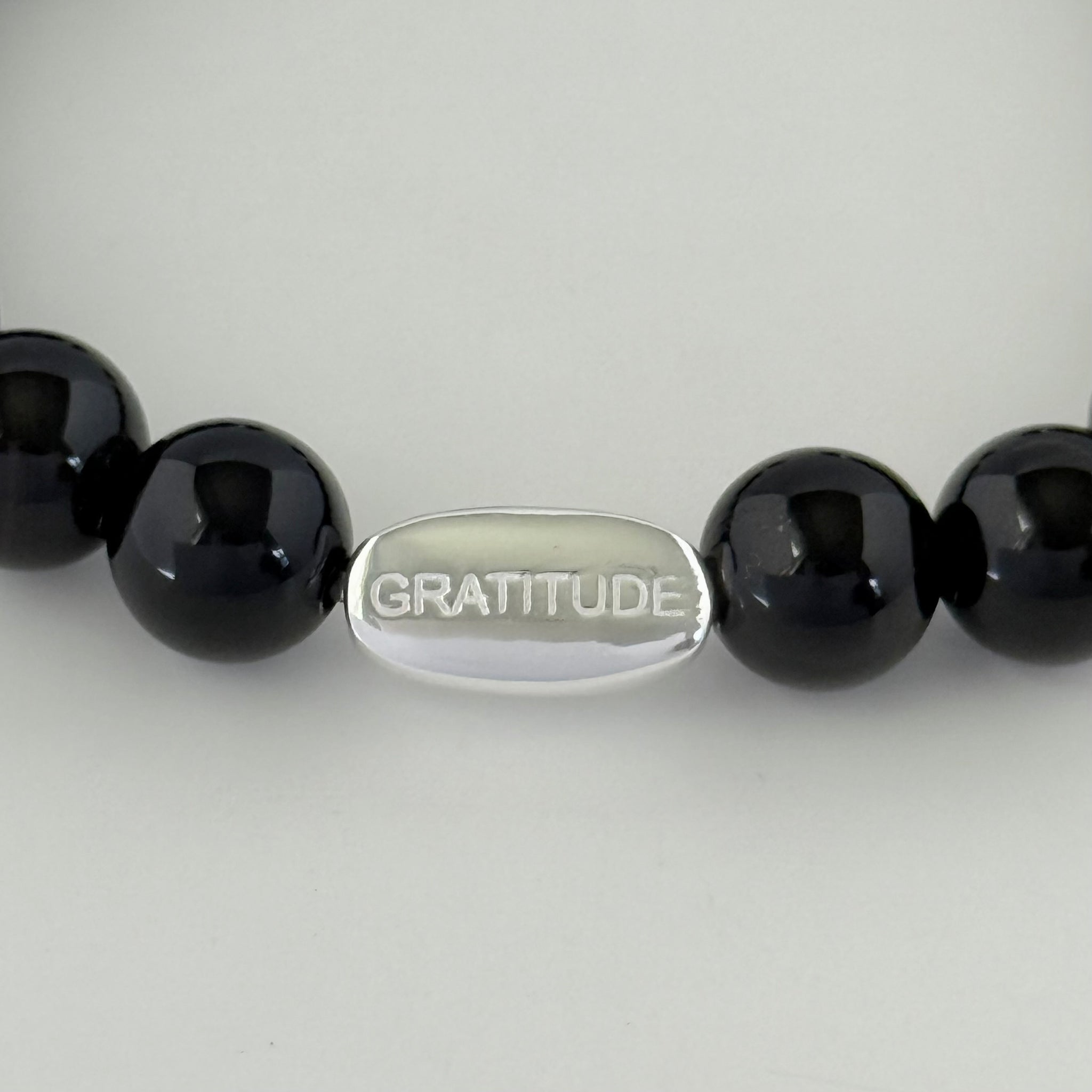 This Beaded Bracelet is hand-made with natural gemstones featuring a 925 sterling silver ‘Gratitude’ charm and an ornate filigree spacer. The stones are threaded on strong elastic making the bracelet perfect for everyday wear. Beautiful on its own or also stacked with other gemstones. Also available in gold-plated sterling silver.