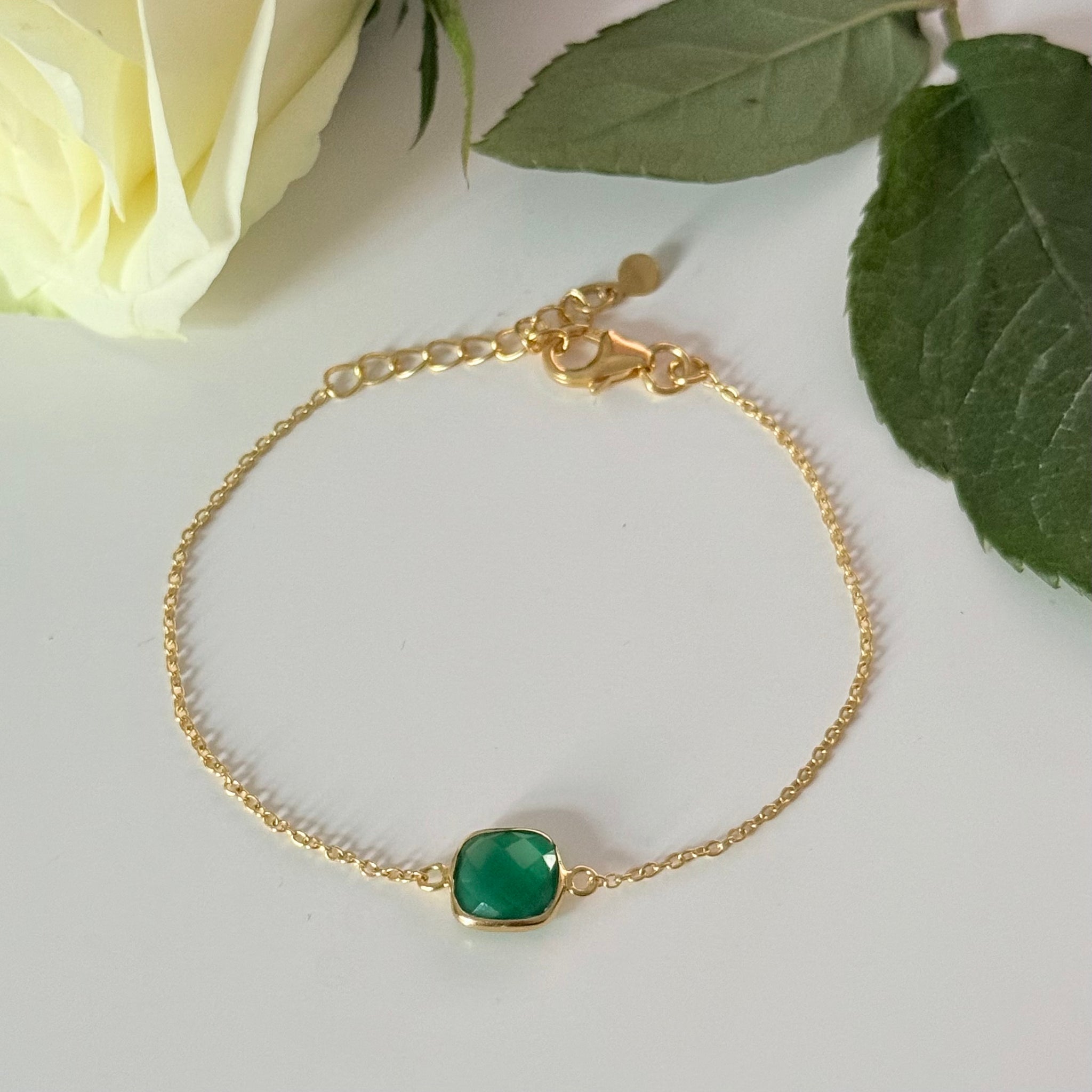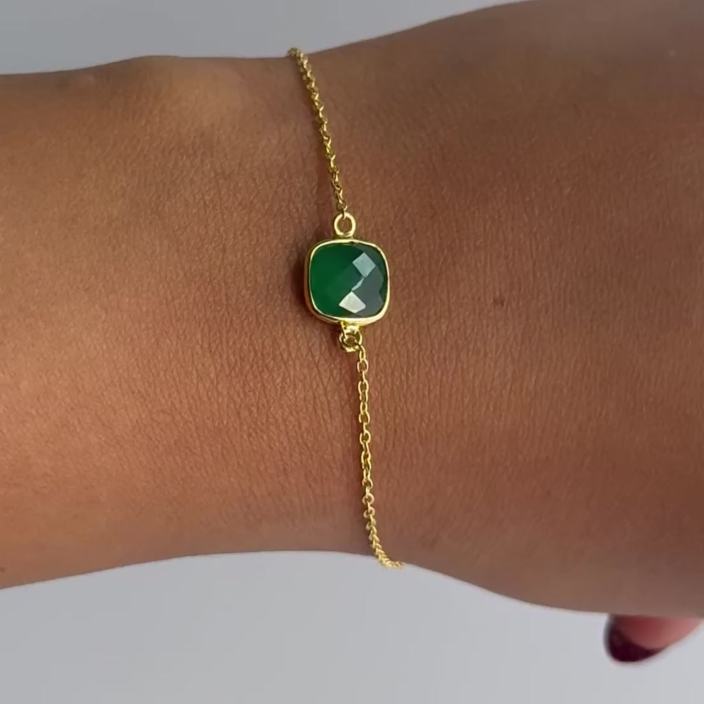 Minimal Adjustable Bracelet in 3 micron 18k Gold Plated Sterling Silver with a Squared Shaped Green Onyx Gemstone
