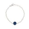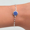 Sterling Silver Paperclip Link Chain Adjustable Bracelet with Round Lapis Lazuli Gemstone