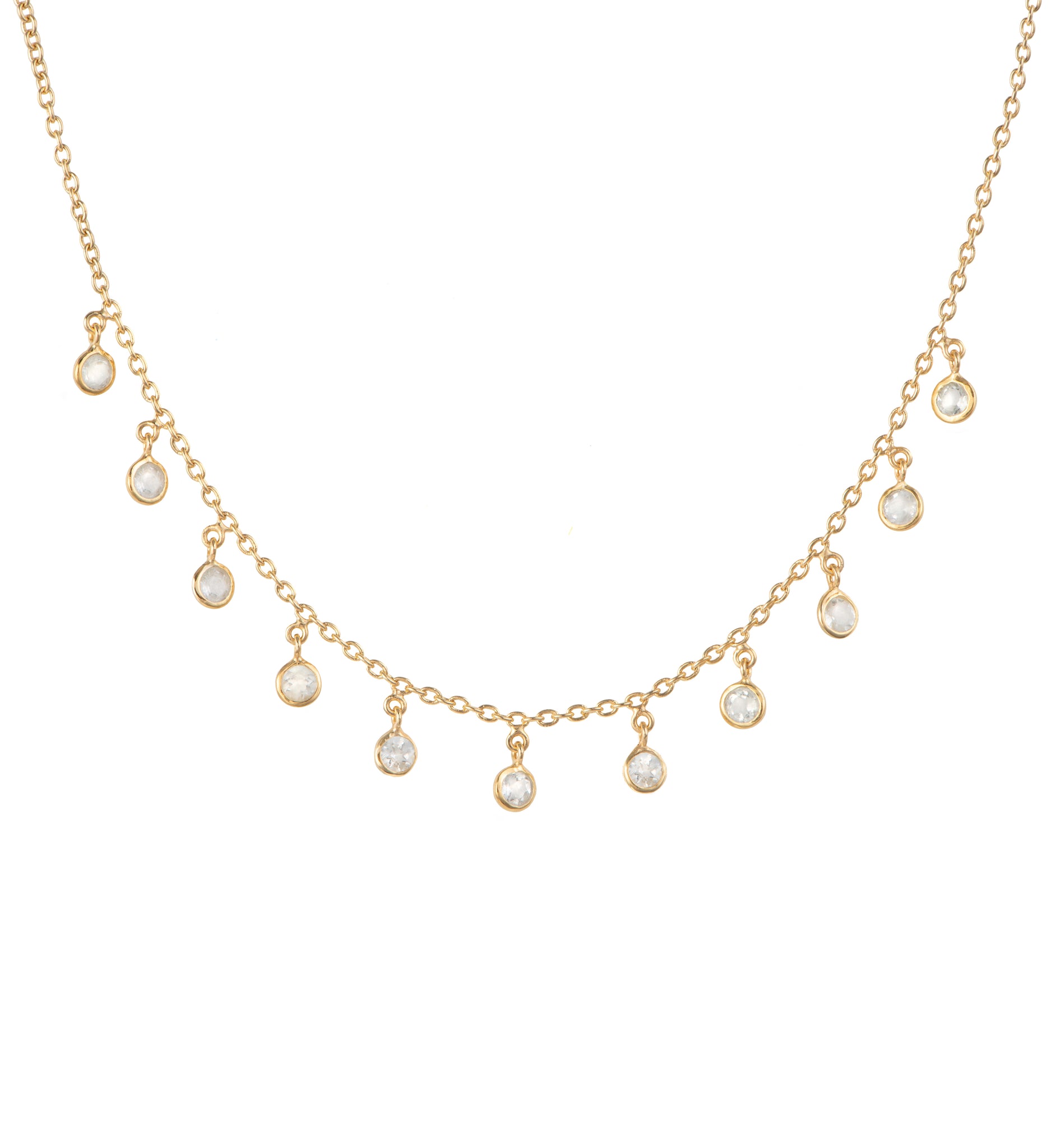 A simple, timeless necklace featuring 11 small round shaped gemstones in a bezel setting cascading from an adjustable 3 micron 18k gold plated sterling silver chain. It’s the kind of piece you’ll reach for when you want to add a gentle pop of colour and a touch of playfulness, whether you’re layering up or keeping things simple for everyday wear. Thoughtfully made, it’s perfect for gifting or for brightening up your own everyday style. Also available in sterling silver and with other gemstone options.