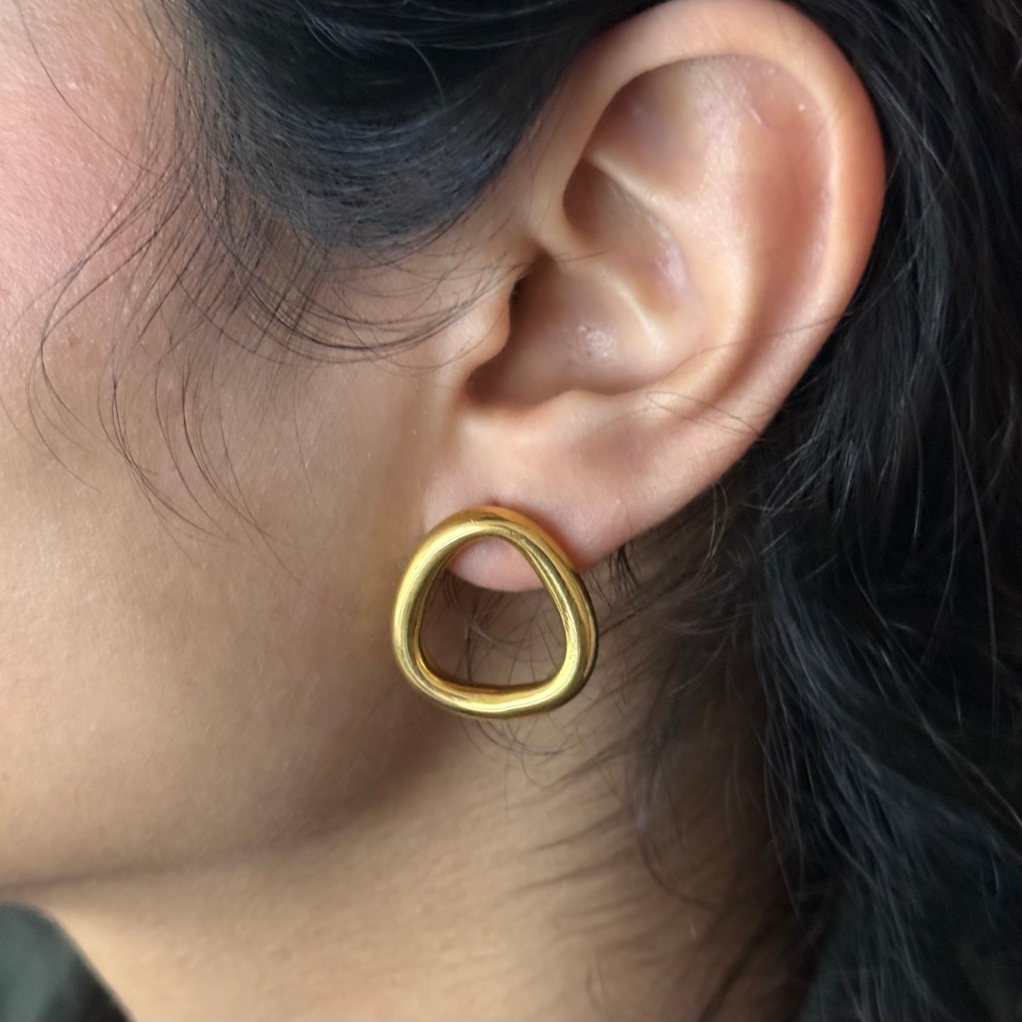 A beautifully made sterling silver stud earrings with a triangle shape. The size of the earring gives them a bold statement look. However, as the earring is made from a hollowed out silver tube, the earrings are very light making them really comfortable to wear. Also available in silver.