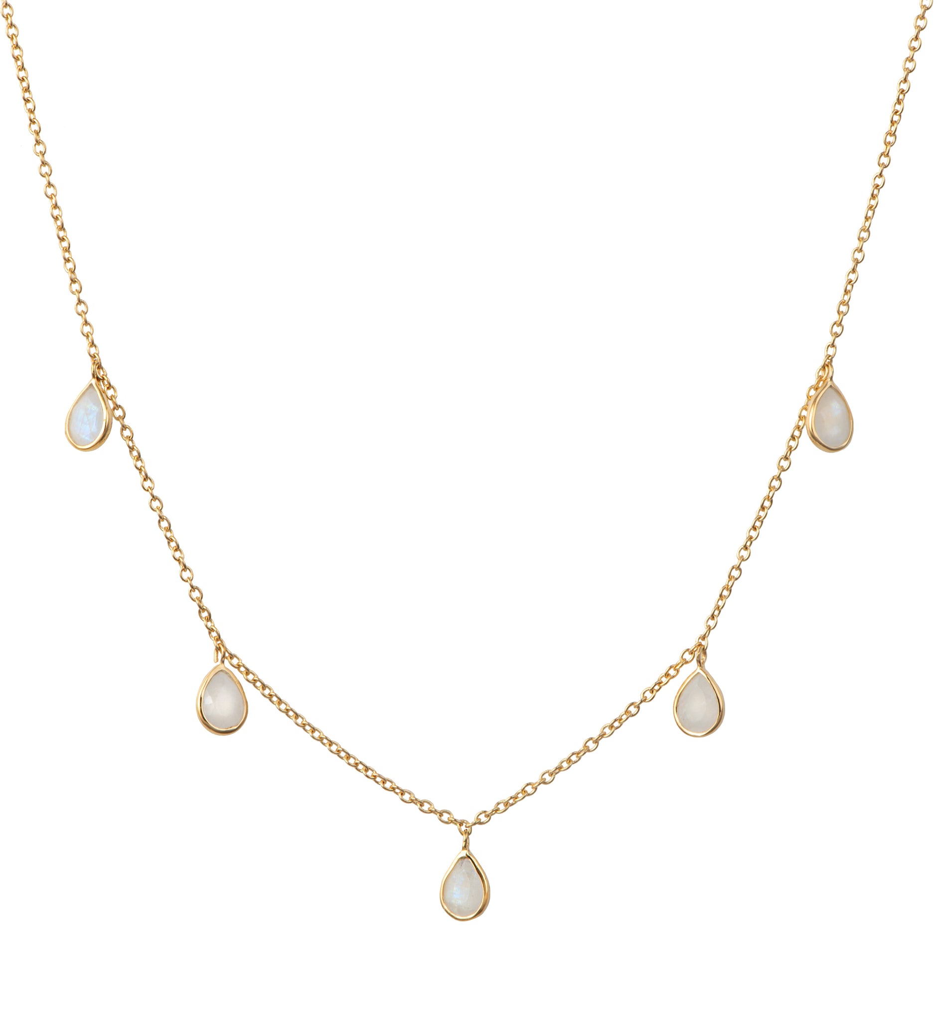 Five Teardrop Shaped Moonstone Gemstone Necklace in Vermeil Gold