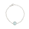 Sterling Silver Paperclip Link Chain Adjustable Bracelet with Round Aqua Chalcedony Gemstone