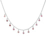 Sterling Silver Small Round Pink Tourmaline Gemstone Drops Necklace