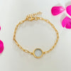 Vermeil Gold Paperclip Link Chain Adjustable Bracelet with Round Blue Topaz Gemstone