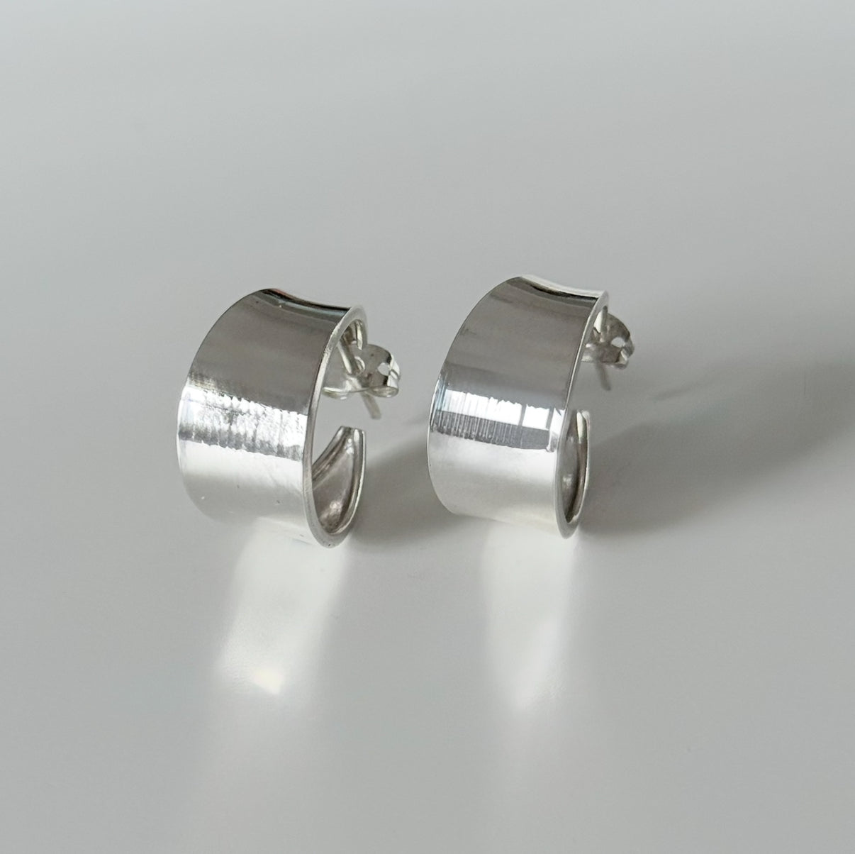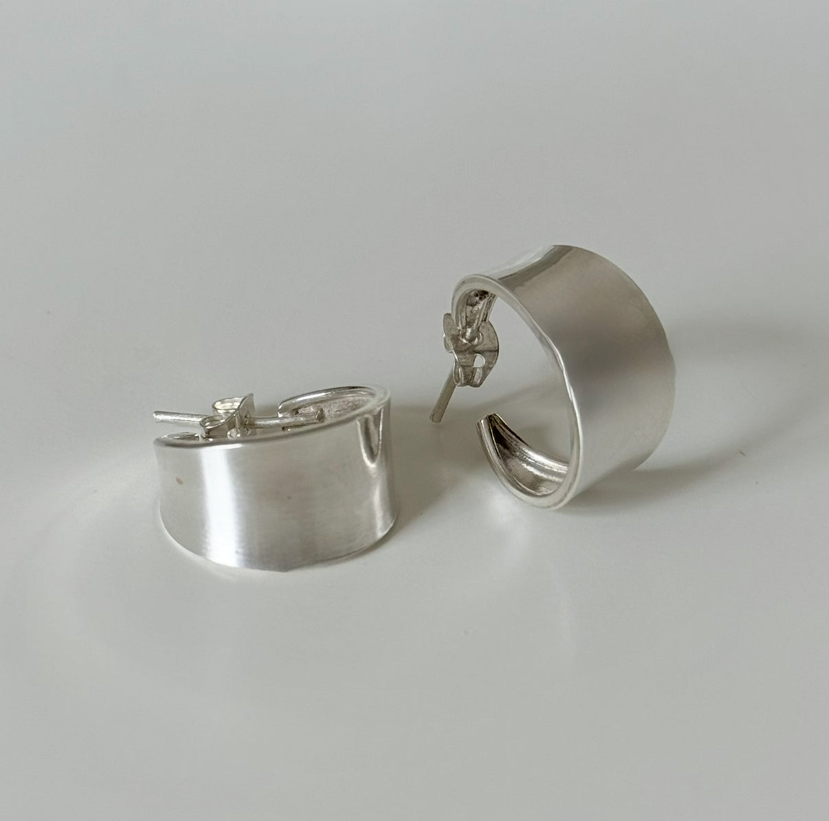 Wide Chunky Sterling Silver Hoop Earrings With Tapered Ends