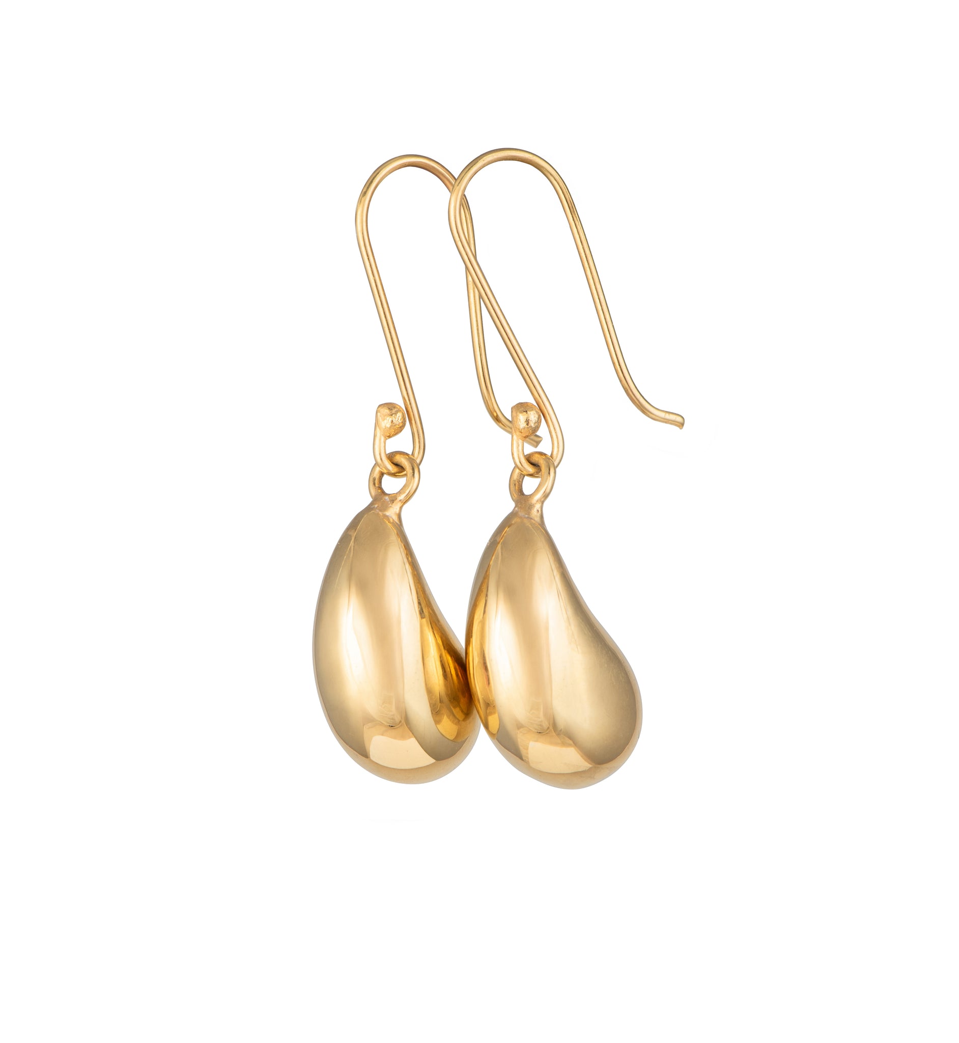 These curved teardrop shaped drop earrings are made with hollow sterling silver that keeps them light and comfortable to wear. Their sculptural, chunky silhouette catches the eye while moving effortlessly with you. Also available in silver, they’re perfect on their own or paired with the matching necklace for a complete, bold and striking look.