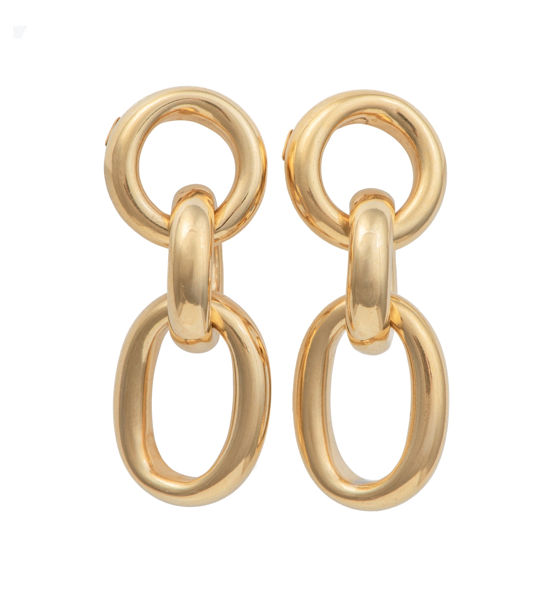 Three small oval hoops interlink together in simple synchronicity on these stylish earrings. Chunky yet very light and comfortable to wear. Beautifully made using the finest 18k gold plated sterling silver. Also available in silver.