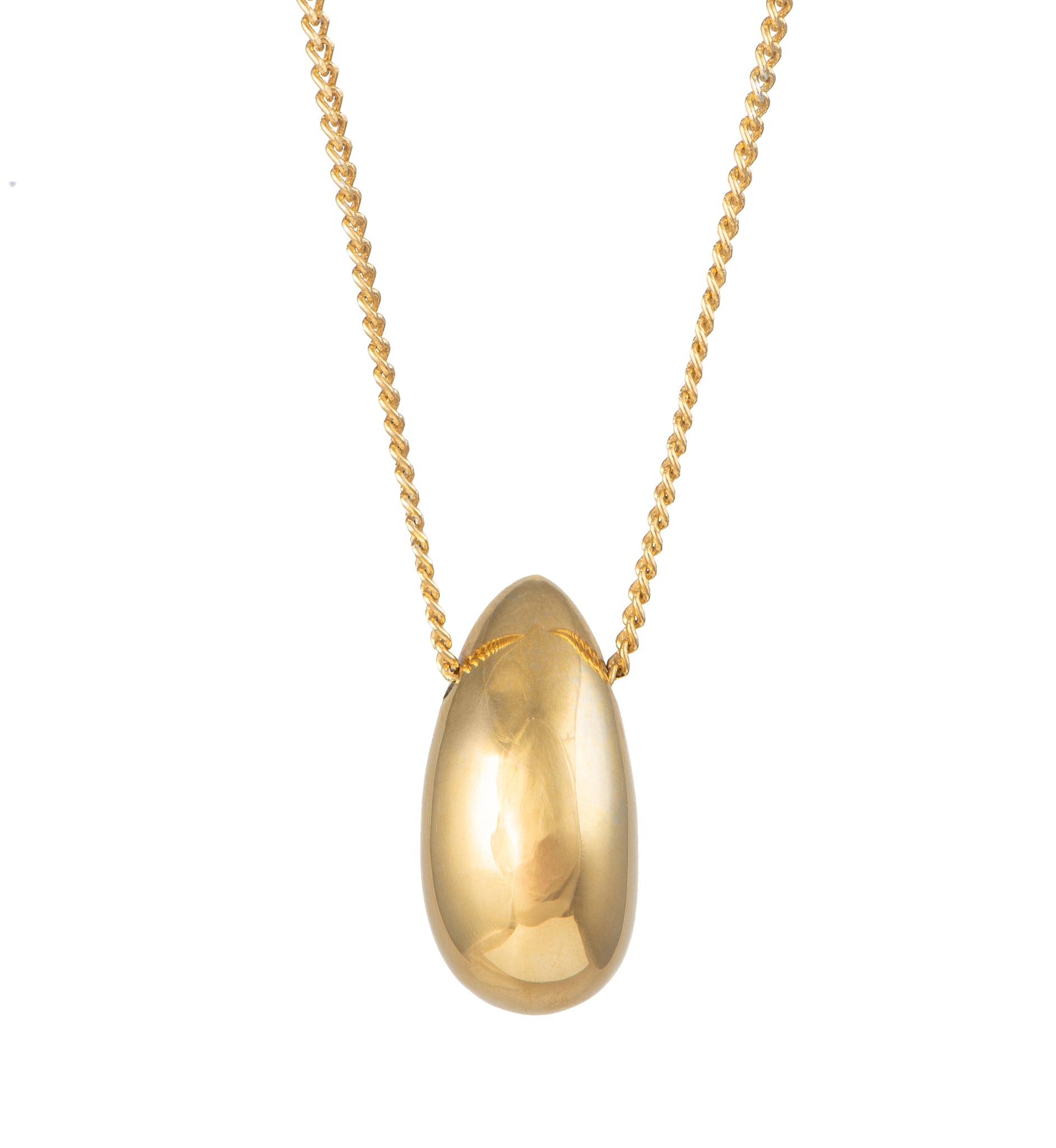 This curved teardrop-shaped pendant necklace is a bold, timeless statement piece, designed to sit perfectly on the neckline. With its hollow, sculptural form, it feels surprisingly light while offering a chunky, eye-catching look. Also available in silver, it pairs beautifully with the matching drop earrings for a complete, effortless style.