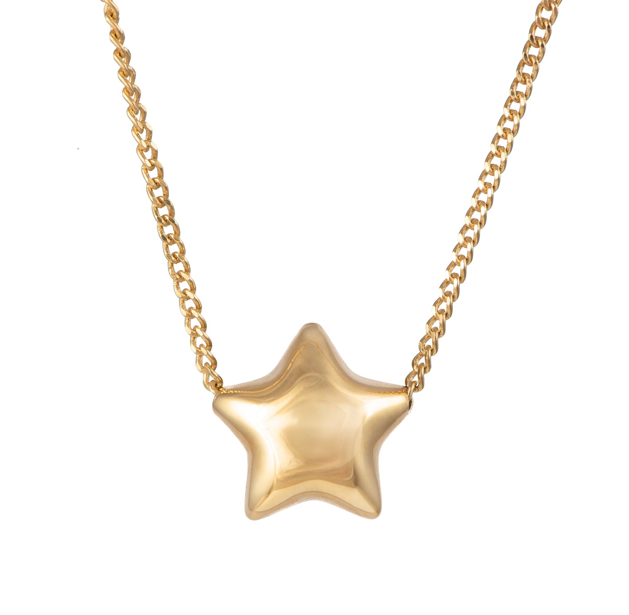 This star-shaped pendant necklace made with hollow silver is both bold yet surprisingly light, with a sculpted design that sits comfortably on your neck. Its chunky shape makes it stand out, while the delicate style makes it easy to wear all day. Also available in silver, it’s a piece that shines on its own or pairs beautifully with matching earrings.