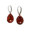 Deep Honey Coloured Baltic Amber Teardrop Shaped Earrings on Leverback Hooks