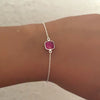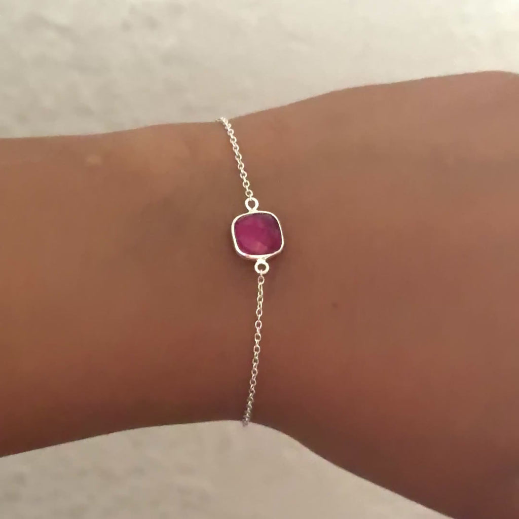 Minimal Adjustable Bracelet in Sterling Silver with a Square-Shaped Ruby Quartz Gemstone
