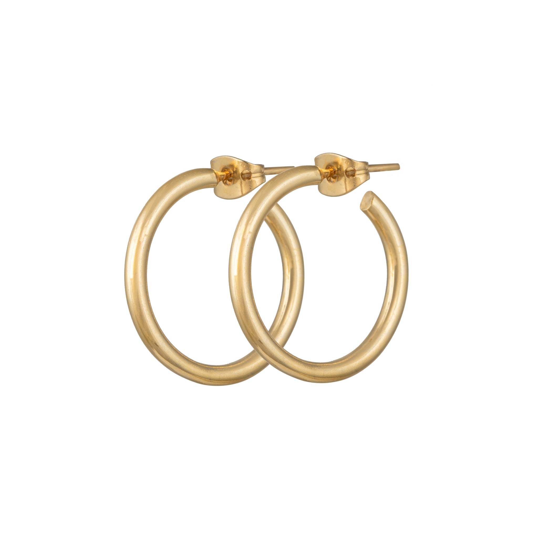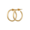 These medium-sized solid round hoops in 18k gold plated sterling silver are made for everyday wear. A classic hoop earring with a smooth rounded silhouette, they are very comfortable and truly versatile. Also available in sterling silver.