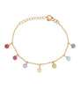 Adjustable Fine Bracelet with Seven Faceted Round Diamond Cut Gemstones in Vermeil Gold