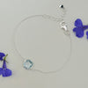 Minimal Adjustable Bracelet in Sterling Silver with a Square-Shaped Blue Topaz Gemstone